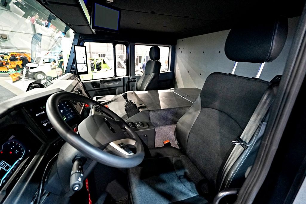 Elektromobil má nejnovější dvoudveřovou kabinu řady Tatra Force v prodlouženém provedení s integrovanou ochranou proti převrácení ROPS (Roll Over Protection System) a ochranou proti padajícím předmětům FOPS (Falling Objects Protection System).