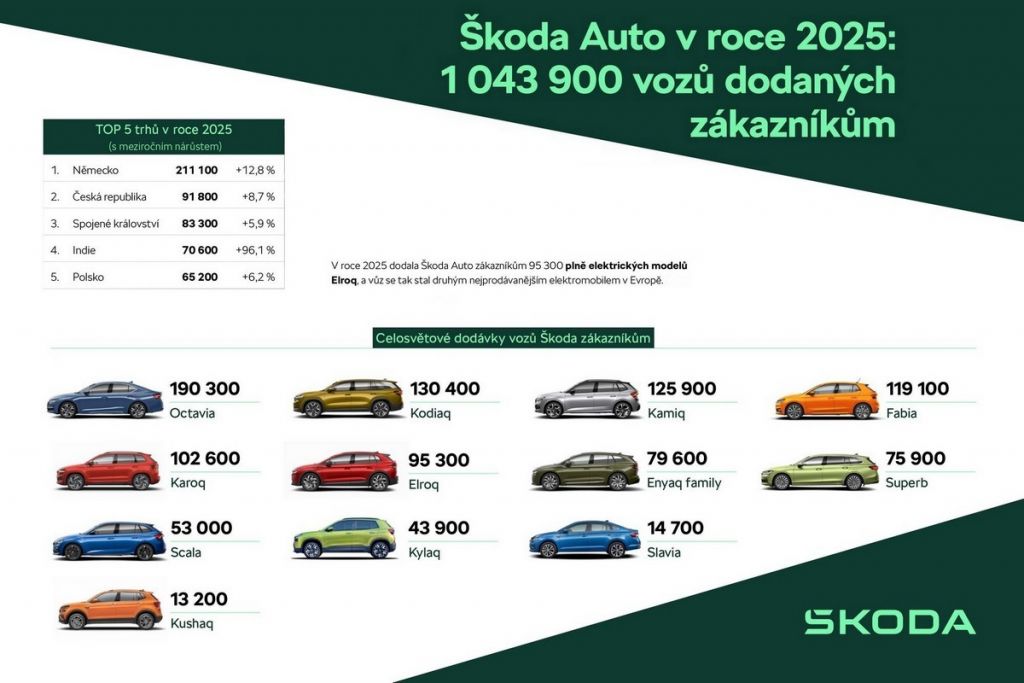 „Škoda Auto dosáhla zcela zásadní úspěch. Naše dodávky v roce 2025 překročily hranici jednoho milionu vozů. Tento úspěch odráží mimořádné nasazení zaměstnanců po celém světě, sílu dealerské sítě a důvěru zákazníků. Společně s prodejními partnery neprodáváme pouze produkty – poskytujeme spolehlivou mobilitu, dostupné technologie a vysoce kvalitní služby zákazníkům od prodeje až po servis. Náš robustní obchodní model nám umožňuje nabízet konkurenceschopná vozidla a zároveň zajišťovat dlouhodobou hodnotu prostřednictvím vysoké úrovně poprodejních a digitálních služeb i osobní zákaznické podpory. Náš přístup k volbě pohonných jednotek – od vysoce účinných spalovacích motorů a mild a plug-in hybridů až po rozšiřující se portfolio praktických plně elektrických vozidel – zákazníci skutečně oceňují,“ uvedl předseda představenstva společnosti Škoda Auto Klaus Zellmer.