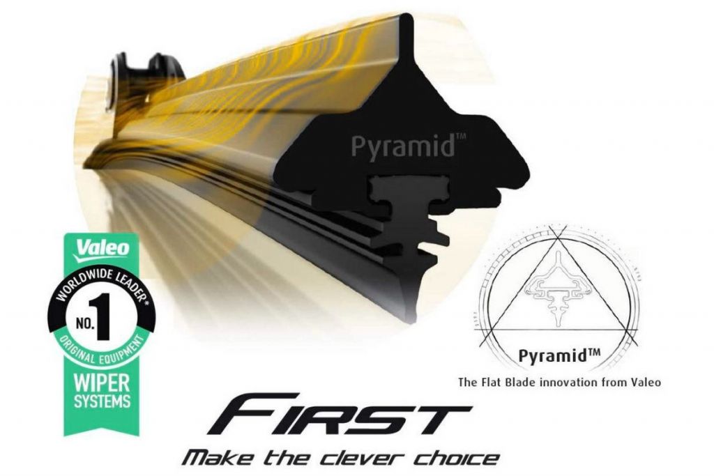 Řada Valeo First™, navržená s patentovanou technologií Pyramid™ a odolným složením ze speciální směsi syntetického kaučuku TEC2 s extra povrchovou úpravou, nabízí dlouhodobou odolnost, životnost a výkon. Díky inovativnímu víceúčelovému systému s plochými stíracími lištami se stírací lišty Valeo First™ intuitivně a snadno instalují na mnoho oblíbených modelů, se kterými jsou kompatibilní.