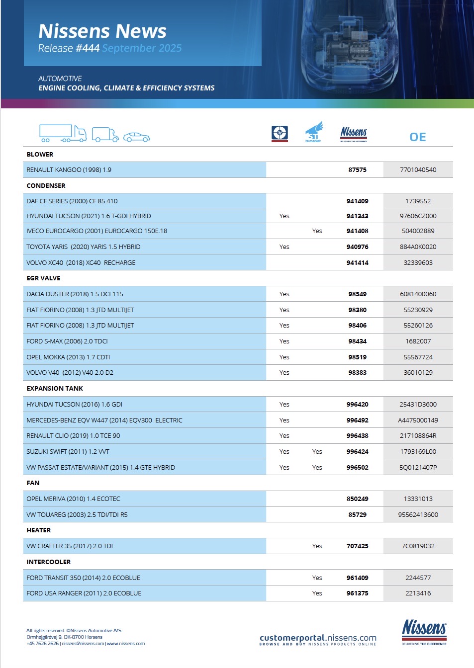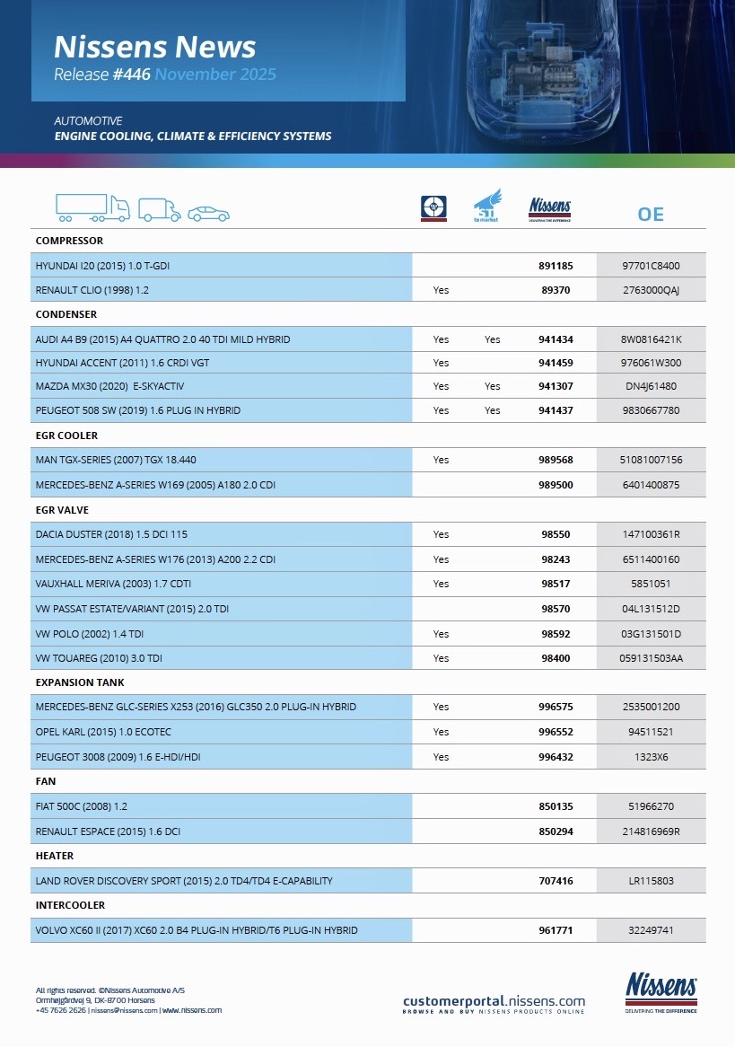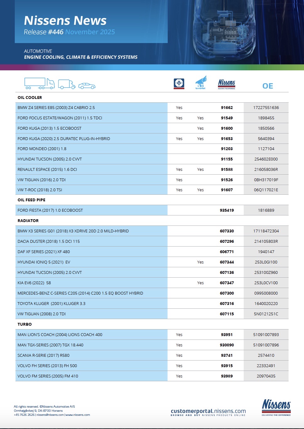 Firma NISSENS ČR zastupuje dánskou společnost Nissens A/S na českém a slovenském trhu v oblasti chladících a klimatizačních systémů do dopravních prostředků a pro průmyslové použití.