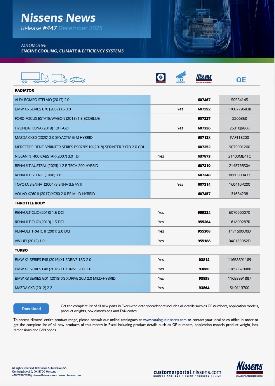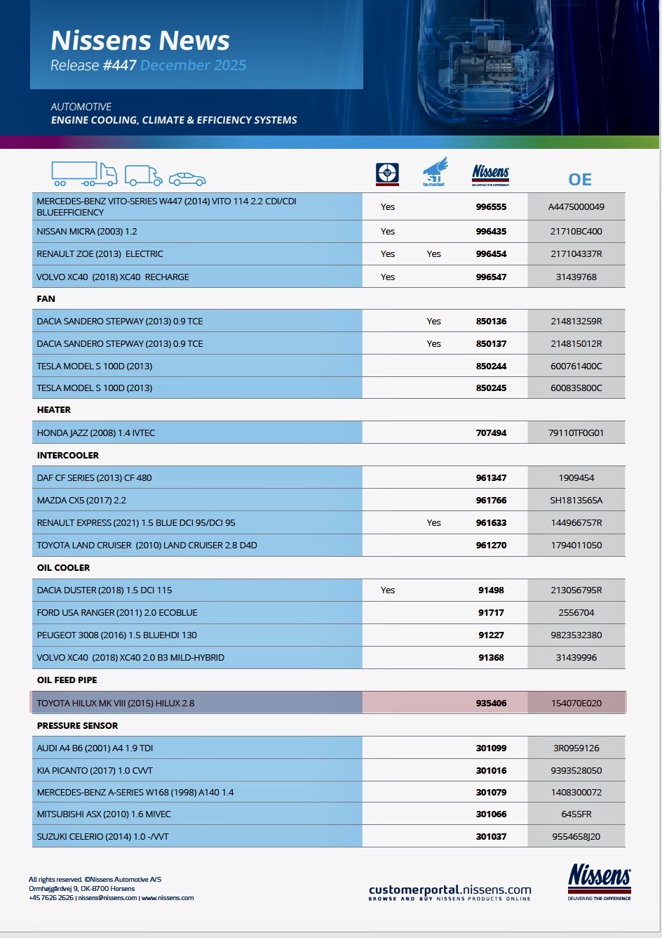 Firma NISSENS ČR zastupuje dánskou společnost Nissens A/S na českém a slovenském trhu v oblasti chladících a klimatizačních systémů do dopravních prostředků a pro průmyslové použití.